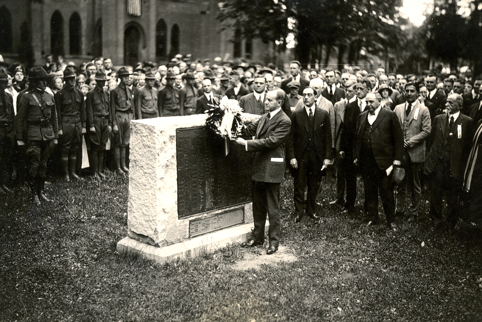 In the spring of 1922 Otterbein was visited by Vice-President Calvin Coolidge. His final act before leaving campus was to lay a wreath on the monument.